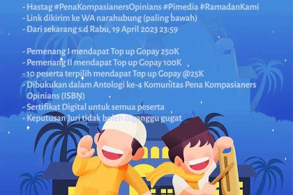 Komunitas Pena Kompasianers Opinians bekerjasama dengan Pimedia kembali mengadakan event literasi menulis cerita anak dengan tema PUASA & LEBARAN MASA KECIL....